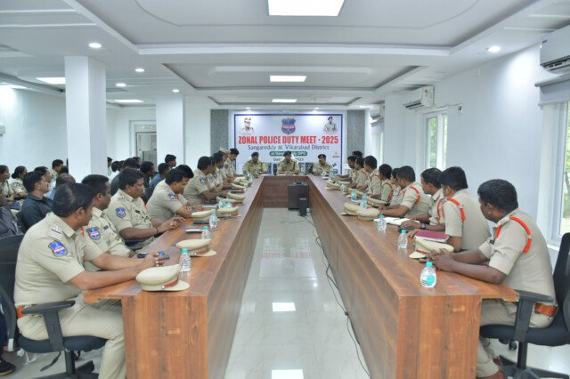 జోనల్ స్థాయి పోలీస్ డ్యూటీ మీట్ సంగారెడ్డి జిల్లా పోలీసు కార్యాలయంలో జోనల్ డ్యూటి మీట్ ను ప్రారంభించిన జిల్లా ఎస్పీ పరితోష్ పంకజ్ ఐపియస్. గత నెలలో నిర్వహించిన జిల్లా స్థాయి డ్యూటీ మీట్ నందు ఉత్తమ ప్రతిభ కనబరిచిన వారిని రాష్ట్ర స్థాయి డ్యూటీ మీట్ కు ఎంపిక చేయడానికి, జోన్-VI లో కమిషనరేట్స్ మినహా సంగారెడ్డి, వికారాబాద్ జిల్లాకు చెందిన 58-మంది అధికారులు, సిబ్బందికి, డాగ్ స్క్వాడ్, బాంబ్ డిస్పోసల్ టీంలకు జోనల్ లెవెల్ డ్యూటీ మీట్ నిర్వహించడం జరిగింది. జోనల్ డ్యూటి మీట్ నందు ఉత్తమ ప్రతిభ కనబరిచిన వారిని ఈ నెల 26-07-2025 నాడు వరంగల్ లో నిర్వహించే రాష్ట్ర స్థాయి డ్యూటి మీట్ కు ఎంపిక చేయడం జరుగుతుందిని అన్నారు. పోలీసుల ప్రతిభను వెలికి తీయడానికే పోలీసు డ్యూటి మీట్.. నిర్వహించడం జరుగుతుందని ఈ డ్యూటీ మీట్ నందు సైంటిఫిక్ ఎవిడెన్స్, నేరం జరిగిన తర్వాత నేరస్థలాన్ని ఏ విధంగా ప్రొటెక్ట్ చేయాలి, నేరస్థలం నందు క్లూస్ ఏ విధంగా సేకరించాలి, కంప్యూటర్ పరిజ్ఞానం, మరియు బాంబ్ స్క్వాడ్, డాగ్ స్క్వాడ్ పని తీరుపై పరీక్షలు నిర్వహించడం జరిగిందని అన్నారు. ఈ నెల 26 న వరంగల్ లో నిర్వహించే రాష్ట్ర స్థాయి డ్యూటీ మీట్ నందు సత్తా చాటి, అనంతరం పూనే లో జరిగే నేషనల్ స్థాయి డ్యూటి మీట్ కు అర్హత సాధించాలి అన్నారు. పోలీసుల పనితీరుకు అద్దం పటె ఇన్వెస్టేగేషన్ లో మెళకువలు ఈ డ్యూటి మీట్ ద్వారా మరింత మెరుగ్గా నేర్చుకోవచ్చు అన్నారు. సరైన పద్ధతిలో ఇన్వెస్టేగేషన్ చేసి కేసును డిటెక్ట్ చేసినట్లయితే ప్రజలలో పోలీసుల పై నమ్మకం పెరుగుతుంది అన్నారు. ఈ కార్యక్రమంలో ఎస్పీ వెంబడి డ్యూటి మీట్ నోడల్ అధికారి అదనపు ఎస్పీ ఎ.సంజీవ రావ్, డీసీఆర్బీ డియస్పి శ్రీనివాస్ రావ్, ఎ.ఆర్.డియస్పి నరేందర్, వికారాబాద్ డ్యూటి మీట్ నోడల్ అధికారి ఎ.ఆర్.డియస్పి వీరేష్, యస్.బి ఇన్స్పెక్టర్స్ విజయ్ కృష్ణ, డీసీఆర్బీ ఇన్స్పెక్టర్స్ రమేష్ డ్యూటి మీట్ అధికారులు సిబ్బంది, తదితరులు పాల్గొన్నారు.