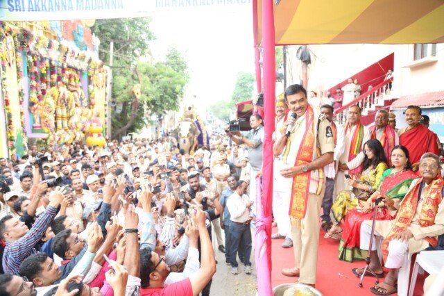 సి.వి. ఆనంద్ ఐ.పి.ఎస్, డిజి, కమిషనర్ ఆఫ్ పోలీస్, హైదరాబాద్, తన సతీమణి శ్రీమతి లలితా ఆనంద్తో కలిసి శ్రీ అక్కన్న మాదన్న ఆలయాన్ని సందర్శించి, ఘట్టం ఊరేగింపును ప్రారంభించారు. ఈ సందర్భంగా కమిషనర్ ఘట్టం ఊరేగింపు కార్యక్రమంలో పాల్గొనడం పట్ల తన సంతోషాన్ని వ్యక్తం చేస్తూ, ఆలయ నిర్వాహకులకు మరియు ఘట్టం ఊరేగింపు నిర్వాహకులకు ధన్యవాదాలు, శుభాకాంక్షలు తెలిపారు.