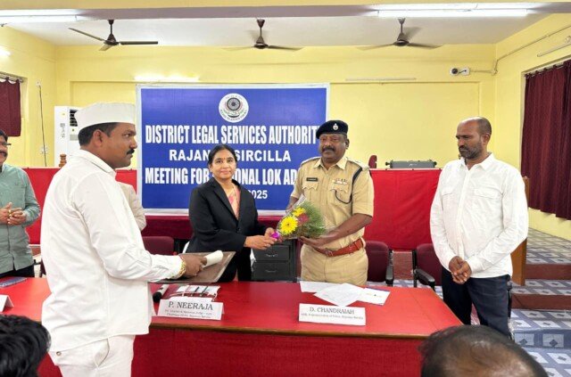 రాజన్న సిరిసిల్ల జిల్లా అదనపు ఎస్పీ డి. చంద్రయ్య స్వాతంత్ర్య దినోత్సవ వేడుకల సందర్భంగా రాష్ట్ర ముఖ్యమంత్రి చేతుల మీదుగా ప్రెసిడెంట్ పోలీస్ మెడల్ అందుకున్న సందర్భంగా జిల్లా న్యాయమూర్తి నీరజ కోర్టు ఆవరణలో అభినందించారు.