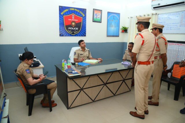 నల్లగొండ పట్టణ 1 టౌన్ పోలీస్ స్టేషన్ ఆకస్మిత తనిఖీ చేసి, పోలీస్ స్టేషన్ లో సిబ్బంది పని తీరు, పోలీస్ స్టేషన్ పరిధిలోని భౌగోళిక పరిసరాలు, స్థితిగతుల వివరాలు గురించి సిఐ రాజశేఖర్ రెడ్డిని అడిగి తెలుసుకుని, రిసెప్షన్ మేనేజ్మెంట్, ఉమెన్ హెల్ప్ డెస్క్, స్టేషన్ రైటర్, లాక్ అప్, యస్.హెచ్.ఓ రూమ్ తదితర ప్రదేశాలను పరిశీలించి, సిబ్బందికి కేటాయించిన కిట్లను తనిఖీ చేయడం జరిగింది. అనంతరం, స్టేషన్ పరిధిలో నమోదు అవుతున్న, నమోదైన కేసుల వివరాలు, స్టేషన్ క్రైమ్ రికార్డ్, జనరల్ రికార్డ్స్ లు తనిఖీ చేసి, మాట్లాడుతూ కేసుల దర్యాప్తు విషయంలో అధికారులు అలసత్వం వహించవద్దని అన్నారు. పోలీస్ స్టేషన్ కి వచ్చే బాధిత ఫిర్యాదులలో ఎటువంటి జాప్యం చేయకుండా, వారి పట్ల తక్షణమే స్పందించి, విచారణ చేపట్టి, బాధితులకు న్యాయం జరిగే విధంగా చూడాలని అన్నారు. స్టేషన్ పరిధిలో ప్రజలకు ఎల్లప్పుడూ అందుబాటులో ఉంటూ, వారి సమస్యలను తీర్చాలని సూచించారు. పోలీస్ స్టేషన్ పరిధిలో శాంతి భద్రతల పరిరక్షణకు, నేర నియంత్రణకు కృషి చేయాలని, బ్లూ కోల్ట్, పెట్రో కార్ డ్యూటీ లో ఉన్నప్పుడు 100 డయల్ కాల్స్ కి తక్షణమే స్పందిస్తూ, వెంటనే సంఘటనా స్థలానికి చేరుకొని, సమస్యల పరిష్కారానికి చర్యలు చేపట్టాలన్నారు. బ్లూ కోల్ట్స్, పెట్రో కార్ పెట్రోలింగ్ సమయంలో, పోలీస్ స్టేషన్ పరిధిలో ఉన్న రౌడీ షీటర్లను ప్రతి రోజు తనిఖీ చేయాలని అన్నారు. పోలీస్ స్టేషన్ పరిధిలో ప్రతి రోజు డ్రంక్ అండ్ డ్రైవ్ తనిఖీలు చేపట్టాలని, బహిరంగ ప్రదేశాల్లో మద్యం సేవించే వారిపై కఠినంగా వ్యవహరించాలని అన్నారు. నేర నియంత్రణ, దొంగతనాల నివారానికి స్టేషన్ పరిధిలో సీసీటీవీల ఏర్పాటుపై దృష్టి సారించి, సీసీ కెమెరాల ఏర్పాటుకు కృషి చేయాలని అన్నారు. సైబర్ క్రైమ్, డయల్ 100 వాటి వినియోగంపై విద్యార్థులు, ప్రజలకు అవగాహన కల్పించాలని సూచించారు. పోలీస్ స్టేషన్ పరిధిలో ఏలాంటి అవాంఛనీయ సంఘటనలు జరగకుండా, సిబ్బంది పని చేయాలని అన్నారు. అసాంఘిక కార్యకలాపాలు అయిన గంజాయి, పిడియస్ రైస్ అక్రమ రవాణా, జూదం లాంటి వాటిపై ఉక్కుపాదం మోపాలని, పోలీస్ స్టేషన్ పరిధిలో గతంలో గంజాయి కేసులలో నిందుతులుగా ఉన్న వారిపై నిఘా ఉంచి, గంజాయి తాగే వారిని, వారికి సరఫరా చేసే వారిని గుర్తించి, కేసులు నమోదు చేయాలని సూచించారు. ఈ కార్యక్రమంలో ఏఎస్పీ మౌనిక ఐపీఎస్, నల్గొండ డీఎస్పీ శివరాం రెడ్డి, సిఐ రాజశేఖర్ రెడ్డి, యస్.బి సీఐ రాము, యస్ఐలు గోపాల్ రావు, సైదులు, సతీష్, మరియు స్టేషన్ సిబ్బంది ఉన్నారు.