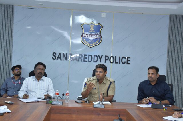 సంగారెడ్డి జిల్లా పోలీసు కార్యాలయంలో జిల్లాలోని వివిధ బ్యాంక్ లకు చెందిన మేనేజర్స్, అసిస్టెంట్ మేనేజర్లతో బ్యాంకుల భద్రత పై సమావేశాన్ని నిర్వహించిన జిల్లా ఎస్పీ పరితోష్ పంకజ్ ఐపిఎస్. బ్యాంక్ లలో భద్రత, సైబర్ నేరాలలో రీఫండ్ ప్రక్రియలో స్పందించవలసిన తీరు, సైబర్ మోసగాళ్ల ఖాతాల ఓపెయింగ్ లో తీసుకోవలసిన చర్యల గురించి బ్యాంకర్స్ తో చర్చించడం జరిగింది. ప్రతి బ్యాంకులో ప్రధానంగా సిసిటీవి కెమెరాలు పనిచేసే విధంగా చూసుకోవాలని, సిసి కెమెరాలు సెన్సార్ మోషన్ ఉండే విధంగా చూడాలని, సెక్యూరిటీ అలారమ్స్ పనిచేస్తున్నాయ లేదా అని చెక్ చేసుకోవాలని సూచించారు. లైసెన్స్ ఆయుధాలు కలిగిన సిబ్బందిని సెక్యూరిటీ గా నియమించుకోవాలని అన్నారు. బ్యాంక్ నుండి పోలీసు స్టేషన్ ఎంత దూరంలో ఉందని, పోలీసు స్టేషన్, అధికారుల ఫోన్ నెంబర్స్ తదితర వివరాలను సిబ్బంది తెలుసుకొని ఉండాలని అన్నారు. తరుచూ సెక్యూరిటీ అడిట్స్ జరిగే విధంగా చూడాలని, ఆధునిక సాంకేతికతను కలిగిన సెన్సార్ లను బ్యాంక్ లలో అమార్చాలని, విలువైన సమాచారాన్ని అందరితో షేర్ చేయవద్దని సూచించారు. అత్యవసర సమయాలలో డైల్ 100 చేయాలన్నారు. సైబర్ నేరాలకు సంబంధించి, బ్యాంక్ అధికారులు OTP లు అడగరని, అనవసర లింక్స్ షేర్ చేయరని ప్రజలకు అవగాహన కల్పించాలన్నారు. కొత్త అకౌంటు ఓపెనింగ్ కోసం వచ్చిన వ్యక్తుల ఫోన్ నంబర్స్, ఆధార్ తదితర వివరాలను అడిగిన తర్వాతనే ఖాతాను ఓపెన్ చేయాలని సైబర్ నేరగాళ్లు తప్పుడు ఫోన్ నెంబర్స్ తో అమాయక ప్రజల పేర్లతో ఖాతాలను తెరిచి, వివిధ రకాల సైబర్ నేరాలకు పాల్పడుతున్నారని అన్నారు. సైబర్ నేరాలలో బాధితులకు అంధించే రీఫండ్ ప్రక్రియను వేగవంతం చేయాలని, రీఫండ్ ప్రక్రియలో పోలీసు వారికి సహకరించవలసిందిగా సూచించారు. వివిధ రకాల బ్యాంక్, ATM దొంగతనాలు, సైబర్ నేరాలకు సంబంధించి కేసు స్టడీ లను చెపుతూ.అప్రమత్తంగా ఉండాలనై అదే విధంగా ప్రజలను అప్రమత్తం చేయాలని, సైబర్ మోసాల గురైతే వెంటనే 1930 హెల్ప్లైన్ నెంబర్ లేదా www.cybercrime.gov.in లో ఫిర్యాదు చేయాలని జిల్లా ఎస్పీ సూచించారు. ఈ మీటింగ్ నందు డి4సి డిఎస్పీ వేణుగోపాల్ రెడ్డి, లీడ్ బ్యాంక్ మేనేజర్ నర్సింగ్, సిసిఎస్ ఇన్స్పెక్టర్ శివ కుమార్ ఫింగర్ ప్రింట్ ఇన్స్పెక్టర్ నాగేశ్వర్ రావ్, డీసీఆర్బీ ఇన్స్పెక్టర్ రమేష్, ఎస్బీ ఇన్స్పెక్టర్ కిరణ్, వివిధ బ్యాంక్ లకు చెందన సుమారు 100 మంది మేనేజర్స్, అసిస్టెంట్ మేనేజర్స్ తదితరులు పాల్గొన్నారు.