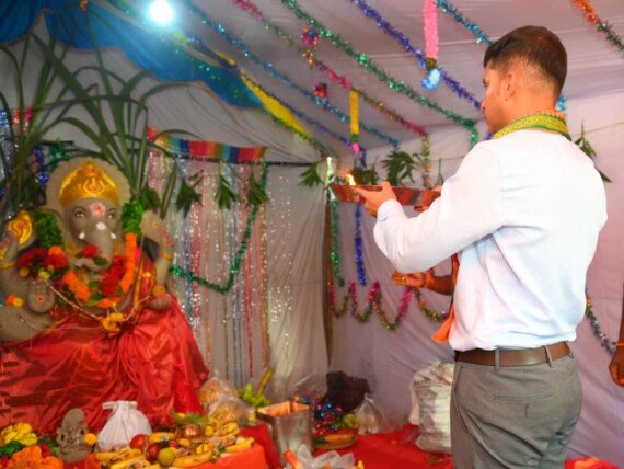 వినాయక చవితి జిల్లా పోలీస్ కార్యాలయంలో ఏర్పాటు చేసిన గణనాధునికి జిల్లా ఎస్పీ శరత్ చంద్ర పవార్ ఐపీఎస్,పాల్గొని ప్రత్యేక పూజలు ఘనంగా నిర్వహించారు. ఈ సందర్భంగా జిల్లా ఎస్పీ మాట్లాడుతూ జిల్లా ప్రజలకు అధికారులకు,సిబ్బందికి వినాయక చవితి శుభాకాంక్షలు తెలుపుతూ,జిల్లాలో నవరాత్రి ఉత్సవాలు శాంతియుత వాతావరణం భక్తి శ్రద్ధలతో కులమతాలకు అతీతంగా సోదరభావం నిర్వహించుకోవాలనీ తెలిపారు. మండపాల వద్ద నిర్వాహకులు, యువత పోలీస్ వారి సూచనల పాటిస్తూ సహకరించాలని తెలిపారు. ఈ పూజ కార్యక్రమంలో అడిషనల్ ఎస్పి రమేష్,నల్లగొండ డీఎస్పీ శివరాం రెడ్డి, 2 టౌన్ సీఐ రాఘవరావు, ట్రాఫిక్ సీఐ మహా లక్ష్మయ్య, ఆర్.ఐలు సంతోష్, సూరప్ప నాయుడు, శ్రీను, నరసింహ,హరిబాబు, యస్.ఐ సైదా బాబు, ఆర్.యస్.ఐలు కళ్యాణ్ రాజ్,రాజీవ్,అఖిల్, సాయి రామ్,శ్రావణి,మరియు పోలీస్ సిబ్బంది తదితరులు పాల్గొన్నారు.