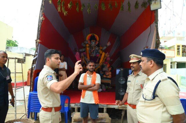 జిల్లాలో వినాయక నవరాత్రి ఉత్సవాల కార్యక్రమాల బాగంగా నిర్వాహకులు ఏర్పాటు చేసిన పలు వినాయక మండపాలను పరిశీలించి మాట్లాడుతూ జిల్లాలో నవరాత్రి ఉత్సవాలు శాంతియుతంగా ప్రశాంత వాతావరణం ఏలాంటి అవాంఛనీయ సంఘటనలు చోటుచేసుకోకుండా నిమజ్జనం వరకు పోలీస్ యంత్రాంగం అన్ని రకాల భద్రతా చర్యలు తీసుకోవడం జరిగిందనీ తెలిపారు. జిల్లాలో అధికారులు,సిబ్బంది ఎల్లప్పుడూ అప్రమత్తంగా ఉంటూ,పెట్రో కార్, బ్లూ క్లోట్స్ సిబ్బంది, 24*7 పెట్రోలింగ్ నిర్వహించడం జరుగుతుందనీ తెలిపారు. మండపాల వద్ద ఎలాంటి అవాంఛనీయ సంఘటనలు చోటుచేసుకోకుండా నిర్వాహకులు విద్యుదీకరణ జాగ్రత్తగా చేపట్టాలని సూచించారు. ప్రతి మండపాల వద్ద నిర్వాహకులు అందుబాటులో ఉండాలని అన్నారు. ఎలాంటి అవాంఛనీయ సంఘటనలు చోటు చేసుకోకుండా ముందస్తుగా మండపాల వద్ద సిసి కెమెరాలు ఏర్పాటు చేసుకోవాలని తెలిపారు. ప్రజలకు వాహనదారులకు ట్రాఫిక్ ఇబ్బందులు కలగకుండా చూడాలని అన్నారు. శాంతి భద్రతలకు విఘాతం కలిగిస్తే చట్టపరంగా కఠినమైన చర్యలు తీసుకుంటామనీ పలు జాగ్రత్తలపై నిర్వహులకు సూచించారు. ఏమైనా అనుకోని సంఘటనలు జరిగితే తక్షణమే పోలీసు వారికి సమాచారం అందించాలని సూచించారు. నిమజ్జనం వరకు పోలీస్ వారి సూచనలు సలహాలు పాటిస్తూ సహకరించాలనీ కోరారు. ఈ కార్యక్రమంలో ఎస్పీ వెంట నల్లగొండ డీఎస్పీ శివరాం రెడ్డి, యస్బి సిఐ రాము,నల్లగొండ 1 టౌన్ సీఐ రాజశేఖర్ రెడ్డి, తదితరులున్నారు.