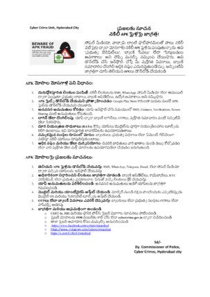 8.సైబర్ మోసాలను 1930 నంబర్కు కాల్ చేసి లేదా cybercrime.gov.in ద్వారా నివేదించండి. 9.తాజా సైబర్ అవగాహన కోసం మమ్మల్ని అనుసరించండి. 10. .https://www.facebook.com/cybercrimepshyd. 11.https://www.instagram.com/cybercrimepshyd. 12.https://x.com/CyberCrimeshyd/.