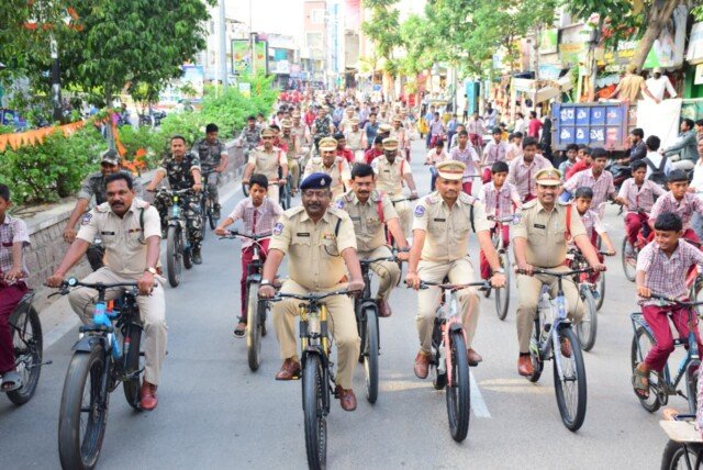 జిల్లా పోలీస్ శాఖ ఆధ్వర్యంలో పోలీసు అమరవీరుల సంస్మరణ వారోత్సవాలలో భాగంగా సాయంత్రం పట్టణ పరిధిలోని అంబేద్కర్ చౌరస్తా నుండి బతుకమ్మ ఘాట్ వరకు సైకిల్ ర్యాలీ నిర్వహించబడింది. విధి నిర్వహణలో ప్రాణాలను అర్పించిన పోలీసు అమరవీరుల త్యాగాలను ప్రతి ఒక్కరూ స్మరించుకోవాలని, సమాజంలో శాంతి భద్రతల స్థాపనకు పోలీసులు చేస్తున్న కృషి గురించి ప్రజలకు అవగాహన కల్పించడానికి ఇటువంటి కార్యక్రమాలు ఎంతో ఉపయోగకరమని తెలిపారు. అలాగే పోలీస్ శాఖ, ప్రజల మధ్య సత్సంబంధాలను బలోపేతం చేయడంలో ఇలాంటి అవగాహన కార్యక్రమాలు కీలక పాత్ర పోషిస్తాయన్నారు.సైకిల్ ర్యాలీలో పోలీస్ అధికారులు, సిబ్బంది, యువత, విద్యార్థులు ఉత్సాహంగా పాల్గొన్నారు. ఈ కార్యక్రమంలో ఇన్స్పెక్టర్లు కృష్ణ, మొగిలి, శ్రీనివాస్, వీరప్రసాద్, వెంకటేశ్వర్లు, నాగేశ్వరరావు, మధుకర్,ఆర్.ఐలు మధుకర్, రమేష్ ,యాదగిరి,ఎస్.ఐలు, ఆర్.ఎస్.ఐలు, పోలీస్ సిబ్బంది, విద్యార్థులు, యువత తదితరులు పాల్గొన్నారు.