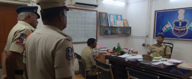 స్టేషన్ రికార్డులు, హిస్టరీషీట్స్ పరిశీలన. •డైల్ – 100 కాల్స్ కు త్వరితగతిన స్పందించాలి. •ఆన్లైన్ బెట్టింగ్స్, బెట్టింగ్ ఆప్స్ మరియు సైబర్ క్రైమ్స్ గురించి, ప్రజలలో అవగాహన కార్యక్రమాలు నిర్వహించాలి. సంగారెడ్డి రూరల్ పోలీసు స్టేషన్ ను ఆకస్మిక తనిఖీ చేసిన జిల్లా ఎస్పీ పరితోష్ పంకజ్ ఐపిఎస్. ఈ సందర్భంగా స్టేషన్ రికార్డ్ లైన ఆర్డర్ బుక్, డ్యూటి రోస్టర్, పార్ట్-ii మ్యాప్ లను తనిఖీ చేశారు. అండర్ ఇన్వెస్టిగేషన్ లో ఉన్న కేసుల వివరాలను అడిగి తెలుసుకున్నారు. ప్రతి కేసులో నాణ్యమైన, ఇన్వెస్టిగేషన్ చేయాలని అన్నారు. ఆన్లైన్ బెట్టింగ్స్, ఆన్లైన్ గేమ్స్ గురించి, ప్రజలకు అవగాహన కల్పించాలని, సైబర్ మోసగాళ్ళ పన్నిన తప్పుడు ఆఫర్లు, ఫేక్ లైక్స్ జోలికి వెళ్లకుండా అవగాహన కల్పించాలని అన్నారు. స్టేషన్ పరిధిలో గల హిస్టరీ షీటర్లు కదలికలపై నిఘా ఉంచామని, తరుచూ వారిని చెక్ చేయాలని సూచించారు. అనంతరం సిబ్బందిని ఉద్దేశించి మాట్లాడుతూ.అధికారులు సిబ్బంది 24*7 అందుబాటులో ఉండాలని, దూర ప్రాంతాల నుండి ప్రయాణాలకు దూరంగా ఉండాలని, ముఖ్యంగా బైక్ నడిపేటప్పుడు హెల్మెట్ తప్పనిసరిగా ధరించాలని అన్నారు. ట్రాఫిక్ రూల్స్ ను పాటిస్తూ ఇతరులకు ఆదర్శంగా ఉండాలని సూచించడం జరిగింది.
