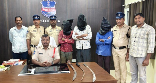 సిరిసిల్ల లోని సుందరయ్య నగర్ సిక్కువాడకు చెందిన ముగ్గురు వ్యక్తులు 1.బుర్హాణి నర్సింగ్ @ భురని నరసింహ సింగ్ s/o అర్జున్ సింగ్, 2.రాజేష్ సింగ్ s/o గురు భజన సింగ్, 3.బురని గోపాల్ సింగ్ s/o భీం సింగ్ లు తల్వార్లు(3పెద్ద కత్తులు) పట్టుకొని రోడ్డు మీదికి వచ్చి భయంకరంగా అరుస్తూ వారిలో వారు ఒకరి పై ఒకరు దాడి చేసుకొంటూచుట్టూ ప్రక్కల ప్రజలను భయబ్రాంతులకు గురి చేస్తూ ప్రజా శాంతికి భంగం కల్గించిన అట్టి ముగ్గురు వ్యక్తులపై కేసు నమోదు చేసి రిమండుకి తరలించానైనది. శాంతి భద్రతలకు భంగం కలిగిస్తూ ప్రజలకు భయబ్రాంతులకు గురి చేస్తే ఎంతటివారైనా ఉపేక్షించేది లేదు అని ఇన్స్పెక్టర్ ఈ సందర్భంగా హెచ్చరించారు.