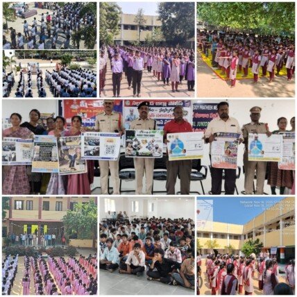 నషా ముక్త్ భారత్ అభియాన్ ఐదేళ్లు పూర్తి చేసుకున్న సందర్బంగా జిల్లా యస్పి శరత్ చంద్ర పవార్ ఐపీయస్ గారి సూచనల మేరకు పోలీస్ శాఖ ఆధ్వర్యంలో జిల్లా వ్యాప్తంగా అన్ని పోలీస్ స్టేషన్ల పరిధిలలో మత్తు రహిత సమాజ నిర్మాణం కొరకు అన్ని విద్యాసంస్థల్లో మాదకద్రవ్యాల వినియోగంపై వల్ల జరిగే నష్టాలు, పరిణామాలు,వాటి బారిన పడకుండా తీసుకోవాల్సిన జాగ్రత్తలు, చట్టపరమైన చర్యలపై పెద్ద ఎత్తున విద్యార్థిని విద్యార్థులకు అవగాహన కార్యక్రమాలు నిర్వహిస్తూ విద్యార్థులతో మాదక ద్రవ్యాల పై జరుగుతున్న పోరాటంలో క్రియశిలా భాగస్వామి అవుతానని, డ్రగ్స్ రహిత జీవనశైలిని అనుసరిస్తూ, నాతో పాటు ఏ ఒక్కరూ డ్రగ్స్ బారిన పడకుండా ఉండడానికి కృషి చేస్తానని, డ్రగ్స్ అమ్మకం, కొనుగోలు, మరియు అక్రమ రవాణా చేసే వ్యక్తుల సమాచారాన్ని సంబంధిత అధికారులకు తెలియజేస్తాను అని డ్రగ్స్ రహిత సమాజమే లక్ష్యంగా సాగుతున్న తెలంగాణ ప్రభుత్వ సంకల్పంలో భాగస్వామిని అవుతానని ప్రతిజ్ఞ లు చేయడం జరిగి