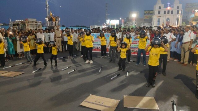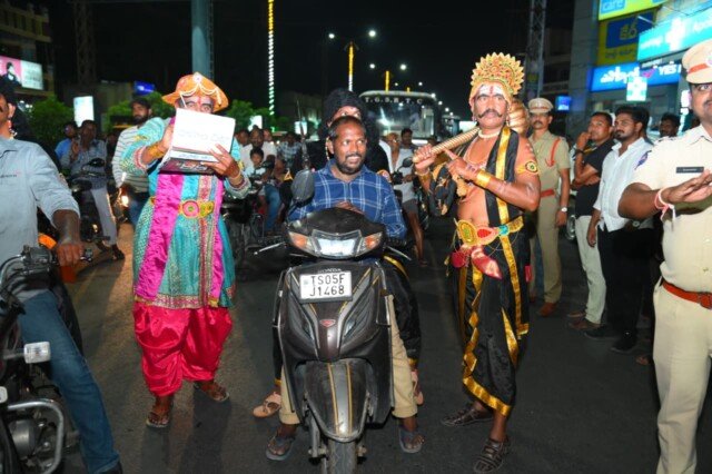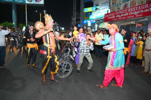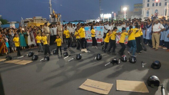 హెల్మెట్ వినియోగం ప్రాముఖ్యతను తెలియజేసేందుకు పోలీస్ కళాబృందం, చిన్నారులు ప్రత్యేక నృత్య ప్రదర్శనలు ఇచ్చారు. యమధర్మరాజు వేషధారణలో కళాకారులు ప్రజలకు వినూత్నంగా సందేశం అందించారు. హెల్మెట్ ధరించకపోతే ప్రమాద సమయంలో ప్రాణనష్టం ఎక్కువగా ఉండే అవకాశాలు ఉన్నాయని వివరించారు. ఈ ప్రదర్శనకు ప్రజల నుంచి విశేష స్పందన లభించింది.