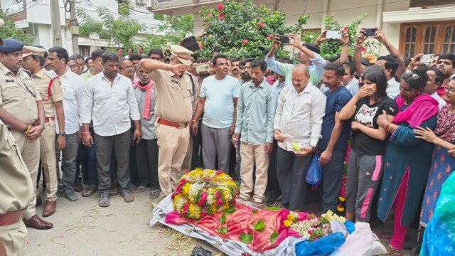 •రోడ్డు ప్రమాదంలో మృతి చెందిన ఎస్ఐ యం.రాజేశ్వర్ గౌడ్ భౌతికకాయానికి అధికార లాంఛనాలతో అంత్యక్రియలు.
