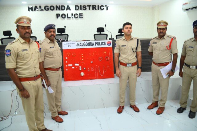 సోషల్ మీడియాలో రీల్స్ కి అలవాటు పడి, అక్రమంగా గంజాయి విక్రయిస్తూ, గంజాయి తాగుటకు బానిసలై రాత్రి వేళలో తాళం వేసిన ఇండ్లల్లో దొంగతనాలకి పాల్పడుతున్న ఇద్దరు మైనర్ బాలురు, ఒక నిందితుడు మరియు వారికి సహకరిస్తున్న ఒక మహిళని అరెస్ట్ చేసిన నల్లగొండ జిల్లా పోలీస్,జిల్లా SP శరత్ చంద్ర పవార్ IPS,వీరి వద్ద నుండి 17 తులాల బంగారం, 79 తులాల వెండి, 50 వేల విలువ గల 02 కిలోల గంజాయి మరియు పల్సర్ NS-200 బైక్ స్వాధీనం ( మొత్తం విలువ 20,00,000/-).