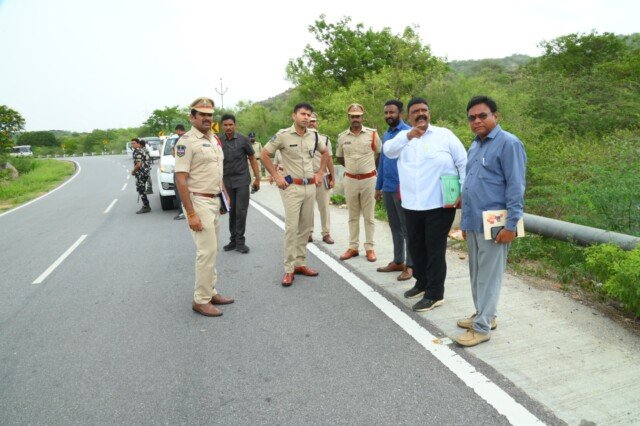 తరచూ ప్రమాదాలకు గురవుతున్న నాగార్జున సాగర్ దయ్యాల గండి, పైలాన్ కాలనీలోని ముత్యాలమ్మ టెంపుల ప్రాతం బ్లాక్ స్పాట్ ను సందర్శించిన జిల్లా ఎస్పీ శరత్ చంద్ర పవార్ ఐపీఎస్. ప్రమాదాలకు గల కారణాలు సంబంధిత అధికారులతో చర్చించి ప్రమాదాల నివారణపై ప్రత్యేక దృషి. జిల్లాలో రోడ్డు ప్రమాదాల నివారణ చర్యల్లో భాగంగా నలగొండ జిల్లా ఎస్పీ నిత్యం ప్రమాదాలు జరుగుతున్న ప్రాంతాలపై ప్రత్యేక దృష్టి సారించి, ప్రజల విలువైన ప్రాణాలు కాపాడుటకు చర్యలు చేపడుతూ ప్రమాదాలకు గల కారణాలను ఎప్పటికప్పుడు సంబంధిత అధికారులతో సమీక్షిస్తూ నివారణ చర్యలు తీసుకోవడం జరుగుతుంది. జిల్లాలోని నేషనల్ హైవే ,స్టేట్ హైవే, ఆర్ అండ్ బి మరియు పంచాయతి రాజ్ ఇంజినీర్లు రోడ్డు ట్రాన్స్పోర్ట్, ఎక్సైజ్,ఎలక్ట్రిసిటీ, ఫారెస్ట్ అధికారులతో సమన్వయం చేసుకుంటూ బ్లాక్ స్పాట్ గుర్తించి ప్రమాదాలు చర్యల పై రాష్ట్ర రహదారుల సంబంధిత అధికారులకు నివేదిక పంపుతూ అవసరమైన చర్యలు చేపట్టడం జరుగుతుంది. దీనిలో భాగంగా జిల్లా ఎస్పీ నాగర్జున సాగర్ వద్ద సమ్మక్క సారక్క దయ్యాల గండి, పైలాన్ కాలనీలోని ముత్యాల గుడి వద్ద తరచూ ప్రమాదాలు జరిగే ప్రాంతాన్ని సందర్శించి అక్కడ ప్రమాదాలు జరుగుటకు గల కారణాలు తెలుసుకొని రానున్న రోజుల్లో సాగర్ సందర్శన కొరకు అధిక సంఖ్యలో పర్యాటకులు సందర్శించనున్నారని వారికి ఎలాంటి ప్రమాదాలు చోటుచేసుకోకుండా రోడ్డుకు ఇరువైపుల ఉన్న కరెంట్ స్తంభాలను పక్కకు జరిపే విధంగా,రోడ్డుకు ఇరువైపుల మెటల్ బీమ్ క్రాస్ బారియర్,వేగ నియంత్రణ సూచికలు, Bollards, రేడియం స్టడ్స్, బ్లింకింగ్ లైట్స్, రేడియం స్టిక్కర్స్, సంబంధిత అధికారులకు త్వరిత గతిన పనులు పూర్తి చేయాలని ఆదేశించారు. అంతే కాకుండా జిల్లా రహదారుల వెంట ఉన్న గ్రామాల్లో పోలీసు కళాజాత బృందం ద్వారా ఎప్పటికప్పుడు రోడ్డు ప్రమాదాలు జరగకుండా తీసుకోవాల్సిన జాగ్రత్తలపై అవగాహన కల్పించున్నారు. రహదారి వెంట ఉన్న గ్రామాలలో విలేజి రోడ్ సేఫ్టీ కమిటీలను ఏర్పాటు చేసి వారి ద్వారా కూడా ప్రమాదాలు జరగకుండా అవగాహన కార్యక్రమాలు నిర్వహించడం జరుగుచున్నది. ఈ కార్యక్రమంలో నాగార్జున సాగర్ సిఐ శ్రీను నాయక్, యస్.ఐ ముత్తయ్య, DE R&B నేషనల్ హైవే మురళి కృష్ణ,యన్.హెచ్ 565 క్రాంట్రక్టర్ వెంకటేశ్వర్ రావు ,డివిజనల్ ఫారెస్ట్ ఆఫీసర్ రాఘవరావు,ఎలక్ట్రిసిటీ ఏ.ఈ శేఖర్, ఎక్సైజ్ సీఐ కల్పన, మోటర్ వెహికిల్ ఇన్స్పెక్టర్ సతీష్, సబ్ ఇంజినీర్ గీత, డిటీఆర్బి రిటైర్ సిఐ అంజయ్య మరియు గ్రామ పెద్దలు పాల్గొన్నారు.