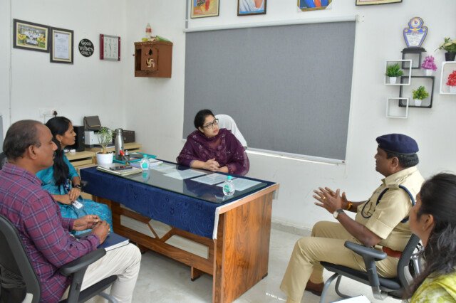 జిల్లా షి టీమ్ బృందాలు ఆకతాయిల చెక్ పెట్టేలా నిరంతరం నిఘా ఉంచాలి. సంగారెడ్డి జిల్లా భరోసా కేంద్రాన్ని ఉమెన్స్ సేఫ్టీ వింగ్ ఎస్పి చేతన ఐపీఎస్ సందర్శించారు. ఈ సందర్భంగా చేతన ఐపిఎస్ భరోసా సెంటర్ రికార్డులను తనిఖీ చేశారు. ప్రతీ రికార్డును ఆన్లైన్ చేయాలని సూచించారు. భరోసా సెంటర్ కు వచ్చిన బాధ్యత మహిళలకు అన్ని రకాల సేవలు ఒకే గొడవ కింద అందించే విధంగా చూడాలని భరోసా సిబ్బందికి సూచించారు. జిల్లా పోలీసు శాఖ, ఉమెన్ అండ్ చైల్డ్ వెల్ఫేర్ శాఖలో తదితర శాఖల సమన్వయంతో బాధిత మహిళలకు సత్వర న్యాయం జరిగే విధంగా మెడికో, లీగల్ సేవలు అన్ని భరోసా సెంటర్లో నిర్వహించే విధంగా చూడాలని అన్నారు. అనంతరం సిబ్బందిని ఉద్దేశించి మాట్లాడుతూ. పొక్సో, అత్యాచారా కేసులలో బాధితులను హక్కున చేర్చుకొని, వారిలో ధైర్యాన్ని నింపి, వారి సమస్యకు సత్వర పరిష్కారం దిశగా అన్నిరకాల సేవలను భరోసా సెంటర్ నందు అందించాలని అన్నారు. డ్యూటీ పరంగా ఎలాంటి సమస్యలున్న మా దృష్టికి తీసుకురావాలని, ఒక్కొక్క విభాగానికి చెందిన సిబ్బంది అందిస్తున్న సేవలను వివరంగా అడిగి తెలుసుకొని, తగు సలహాలు సూచనలు చేశారు. షి టీమ్ బృందాలు వివిధ స్కూల్స్, కళాశాలల వద్ద విద్యార్థుల భద్రతకై నిరంతరం గస్తీ కాస్తూ ఆకతాయిల ఆగడాలకు చెక్ పెట్టాలని అన్నారు. ఈ విజిటింగ్ భరోసా నోడల్ అధికారి సంగారెడ్డి జిల్లా అదనపు ఎస్పీ ఈ.సంజీవ రావు, ఇన్స్పెక్టర్ రామానాయుడు, భరోసా సెంటర్, షి టీమ్ సిబ్బంది తదితరులు ఉన్నారు.