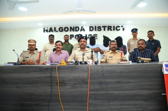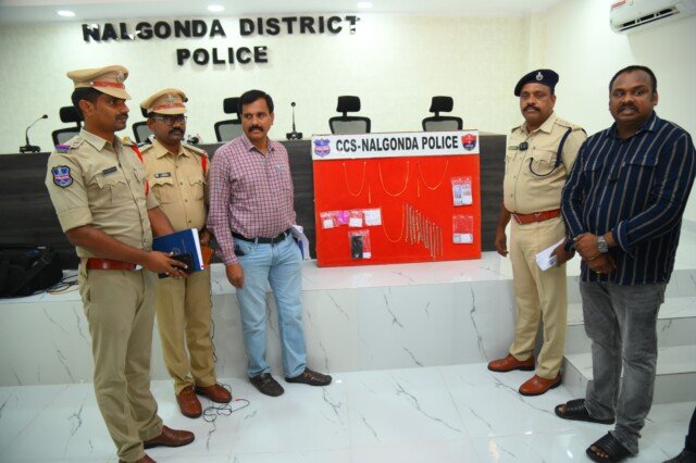 గత కొంత కాలంగా నల్లగొండ జిల్లాలో తాళం వేసిన ఇళ్లల్లో పగలు, రాత్రి సమయాల్లో దొంగతనాలు మరియు బైక్ డీక్కి ల నుండి దొంగతనాలు జరుగుతున్న నేపథ్యం లో నల్గొండ జిల్లా ఎస్పి శరత్ చంద్ర పవార్ ఆదేశాల మేరకు ప్రత్యేక బృందాలను ఏర్పాటు చేసి సిసిఎస్, నల్లగొండ I టౌన్ పోలీసులు, చందంపేట్ మరియు పెద్దవూర పోలీసులు వివిధ ప్రాంతాలలో వాహనాలు తనిఖీలు చేస్తున్న క్రమంలో ఉదయం 10:30 నిమిషాలకు చందంపేట మండలం పోలేపల్లి x రోడ్ వద్ద అనుమానాస్పదంగా బైక్ పై వచ్చిన ఇద్దరు వ్యక్తులను ఆపి “పాప్లాన్ డివైస్” (వేలిముద్రాల తనిఖి పరికరం) తో చెక్ చేయగా వీరు పాత నేరస్తులు అయిన బీసపోగు శాంసన్ మరియు కండర కొండ కృష్ణ కిశోర్ గా గుర్తించడం జరిగింది. తదుపరి వారిని విచారించగా బీసపోగు శాంసన్ జైల్ నుండి విడుదలైన తరువాత ఇంటి తాళాలను పగులకొట్టి, చందంపేట, వాడపల్లి, చింతపల్లి, ఇబ్రహీంపేట, నేరేడుచర్ల, మరియు ఆంధ్రప్రదేశ్ రాష్ట్రం లోని బెల్లంకొండ, బండ్లమోటు పోలీసు స్టేషన్ పరిధులలో మొత్తం (09) దొంగతనాలకు పాల్పడినట్లు మరియు ఈ (09) దొంగతనాలలో (02) డీక్కి దొంగతనాలను, కండర కొండ కృష్ణ కిశోర్ తో కలిసి చేసినట్లు తెలిపాడు. తదుపరి కండర కొండ కృష్ణ కిశోర్ ను విచారించగా పెద్దవూర, పెబ్బేరు, తో పాటూ మోత్కూర్ పిఎస్ పరిధిలో కూడా (03) డీక్కి దొంగతనాలకు పాల్పడినట్లు తెలిపాడు. బీసపోగు శాంసన్ కు కండర కొండ కృష్ణ కిశోర్ కు చెర్లపల్లి జైల్ లో పరిచయం ఏర్పడినది అని జైల్ నుండి విడుదలైన తరువాత వీరు ఇరువురు కలిసి బైక్ డీక్కి దొంగతనాలకు పాల్పడినట్లు తెలిపాడు. తదుపరి విచారణలో వీరిపై గతంలో తమిళనాడు, ఉమ్మడి తెలుగు రాష్ట్రాలలో కూడా దొంగతనం కేసులు ఉన్నట్లు గుర్తించడం జరిగింది. నల్గొండ I టౌన్ పరిధిలో గస్తీ తిరుగుతున్న పోలీసులకు ఒక అనుమానాస్పద వ్యక్తి బంగారం అమ్ముటకు బంగారు షాప్ కి వచ్చినట్లు సమాచారం రాగా, పోలీసులు అక్కడికి చేరుకొని అట్టి వ్యక్తిని అమ్ముటకు తెచ్చిన బంగారు ఆభరణాలు ఎక్కడివి అని విచారించగా తన పేరు దర్మడి దుర్గా ప్రసాద్ అని, తను కాకినాడ కు చెందిన వాడని, తాను జల్సాలకు అలవాటు పడి పగలు, రాత్రి సమయాల్లో ఇంటి తాళాలను పగులగొట్టి నల్గొండ జిల్లాలో దొంగతనాలకు పాల్పడినట్లు, నల్గొండ I టౌన్ పిఎస్ మరియు నల్గొండ II టౌన్ పిఎస్ పరిధిలో (03) దొంగతనాలకు పాల్పడినట్లు, ఈ బంగారు ఆభరణాలు నల్గొండ I టౌన్ పరిధిలోని ఇంటిలో రాత్రి పుట చేసిన దొంగతనం కు సంబంధించి ఉన్నట్లు తెలిపాడు. తదుపరి విచారణ జరుపగ ఇతనిపై గతంలో కూడా దొంగతనం కేసులు ఉన్నట్లు తెలిసింది. ఇట్టి ముఠా సభ్యులను పట్టుకోవడంలో నల్గొండ డి.ఎస్.పి. కె. శివరాం రెడ్డి పర్యవేక్షణలో నల్గొండ సి.సి.ఎస్ ఇన్స్పెక్టర్ ఎమ్. జితేందర్ రెడ్డి, నల్గొండ I టౌన్ ఇన్స్పెక్టర్ రాజశేఖర్ రెడ